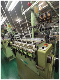 私たちは、長年にわたり編物、細幅織物の製造に携わっており、豊富な経験と実績をもとに、高品質な製品づくりを行っております。自社には多様な仕様に対応可能な編機、細幅織機をはじめ、それに付随する各種周辺設備を多数保有しており、製品開発から生産までを一貫して行える体制を整えております。
