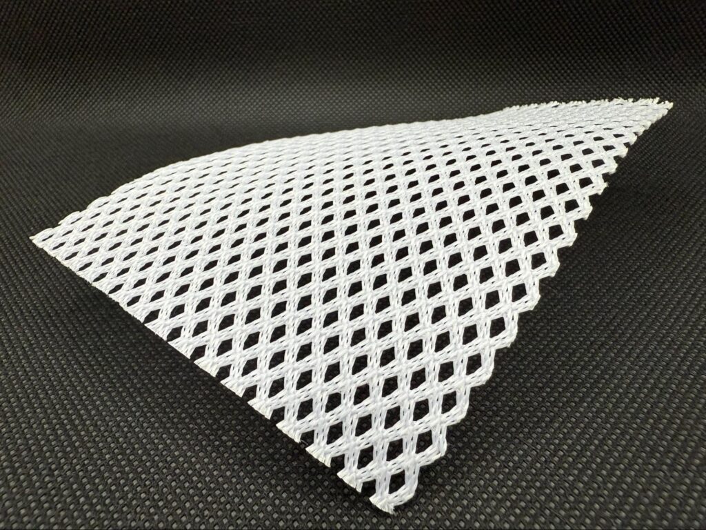本製品は、経編(たてあみ)技術を用いて製造されたポリエステル繊維製の高機能芯材です。一般的な樹脂や紙素材の芯材と異なり、繊維ならではの柔軟性と耐久性を兼ね備えており、幅広い分野での活用が可能です。