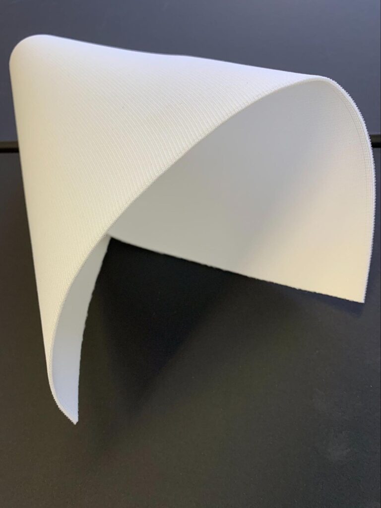 繰り返し折り曲げても折り癖や折損が生じにくく、洗濯によるヘタリもほとんど見られません。また、生地表面の肌触りは繊維製品と変わらず、衣類や寝具、医療・介護用品など、肌に直接触れる製品にも安心して使用できます。