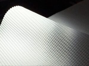 「ニット芯材(ハード)」は、経編技術をベースに開発された高機能芯材で、長さ方向および垂直方向に明確な折線を形成できる構造を備えています。これにより、立体構造の成形や繰り返しの折りたたみに対して高い安定性を発揮し、製品の形状保持性を大きく向上させます。