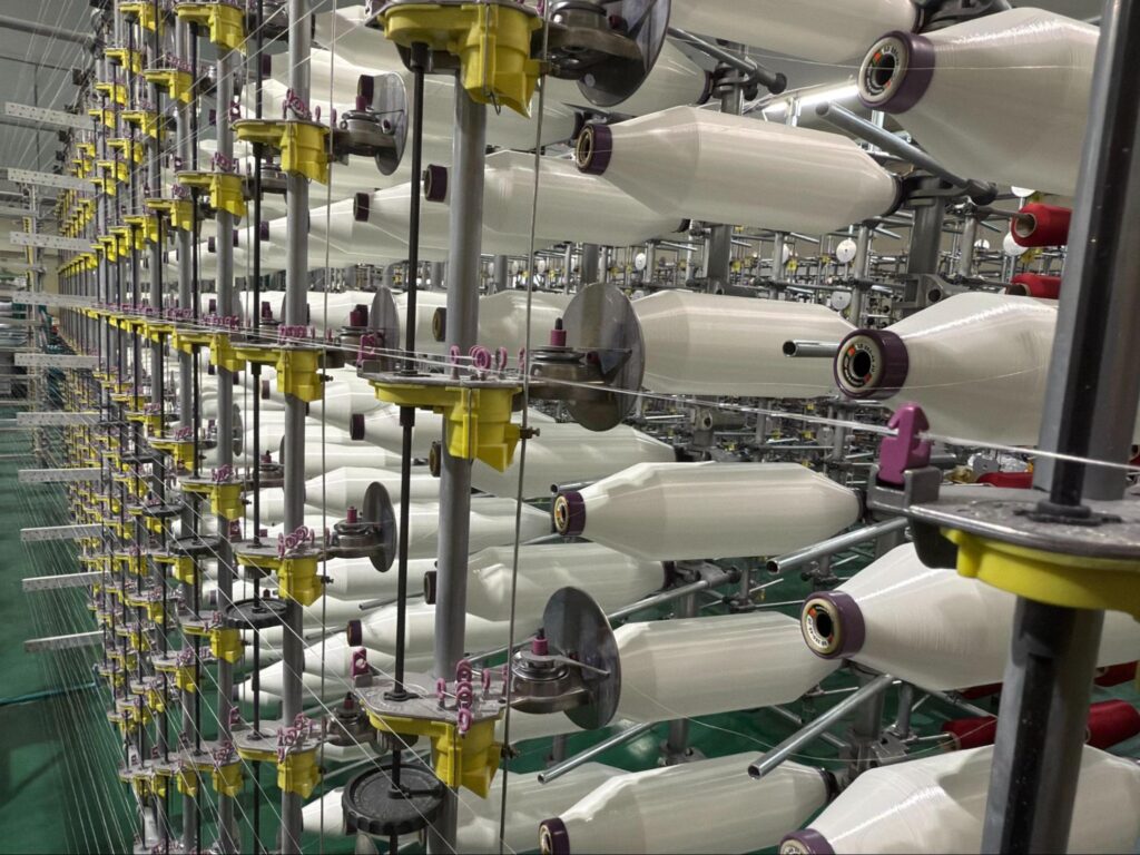 整経は経編機の準備工程となり、経編に必要な経糸を正確な本数・幅で均等に並べ、すべての糸の長さをそろえ、均一な張力を与えるために行います。これにより、糸切れや織りムラを防ぎ、織りの品質を安定させることができます。