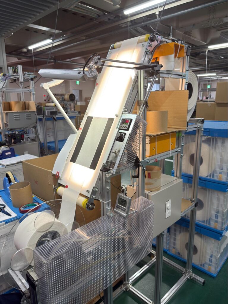 検査を通過した生地を用途に応じた形に仕立てする工程です。巻き取りやカット、端の処理など製品、ご要望に合わせた仕立てを行い、最終製品として出荷できる状態に整えます。